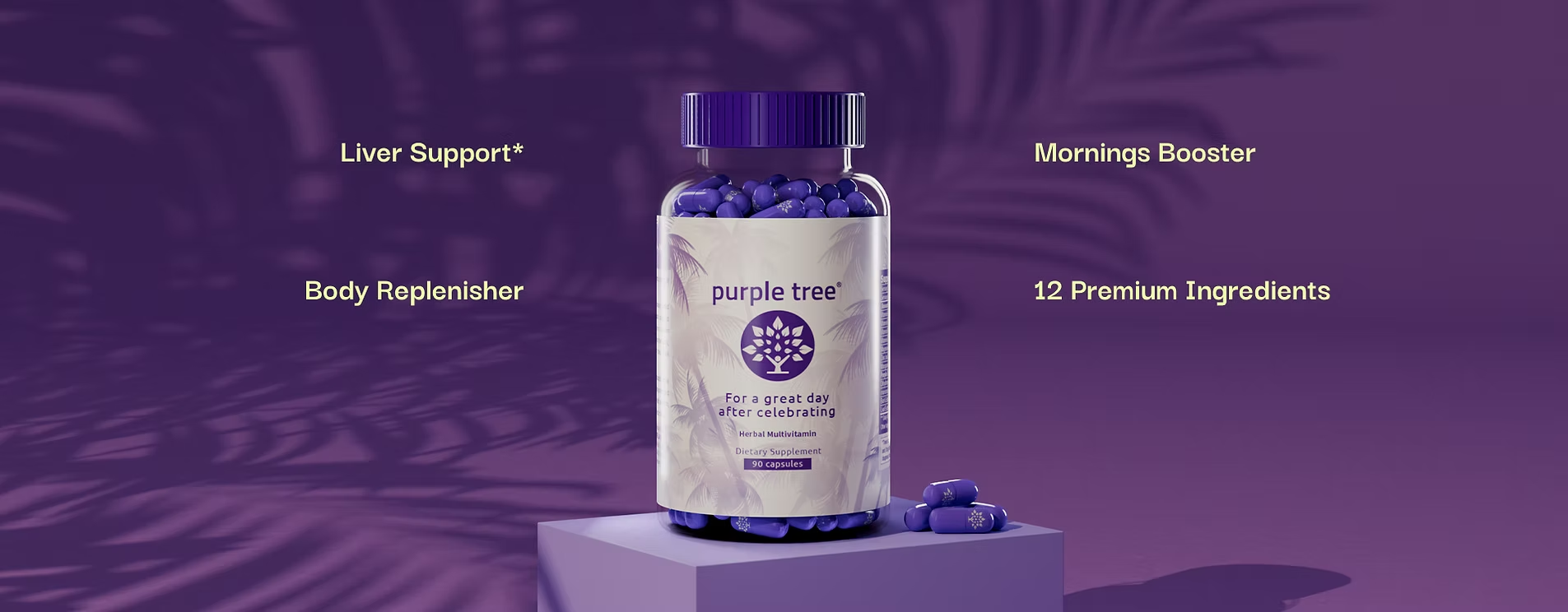 - Celebrate Tonight & Thrive Tomorrow: Purple Tree is a post-celebration wellness herbal multivitamin especially formulated to support the liver and replenish the body with key vitamins, antioxidants and electrolytes.*